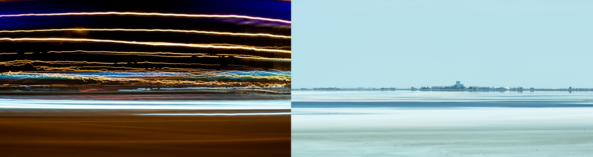 An attempt to close the artistic and photographic gap between long exposure night photos made during a bus trip and landscape photos of the salt lake Tuz in Turkey.